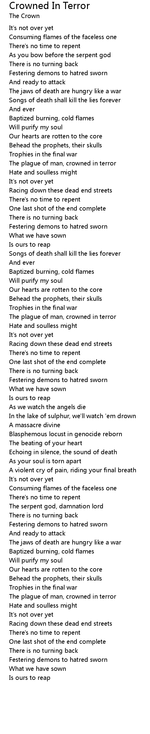 The plague of man, crowned in terror |
