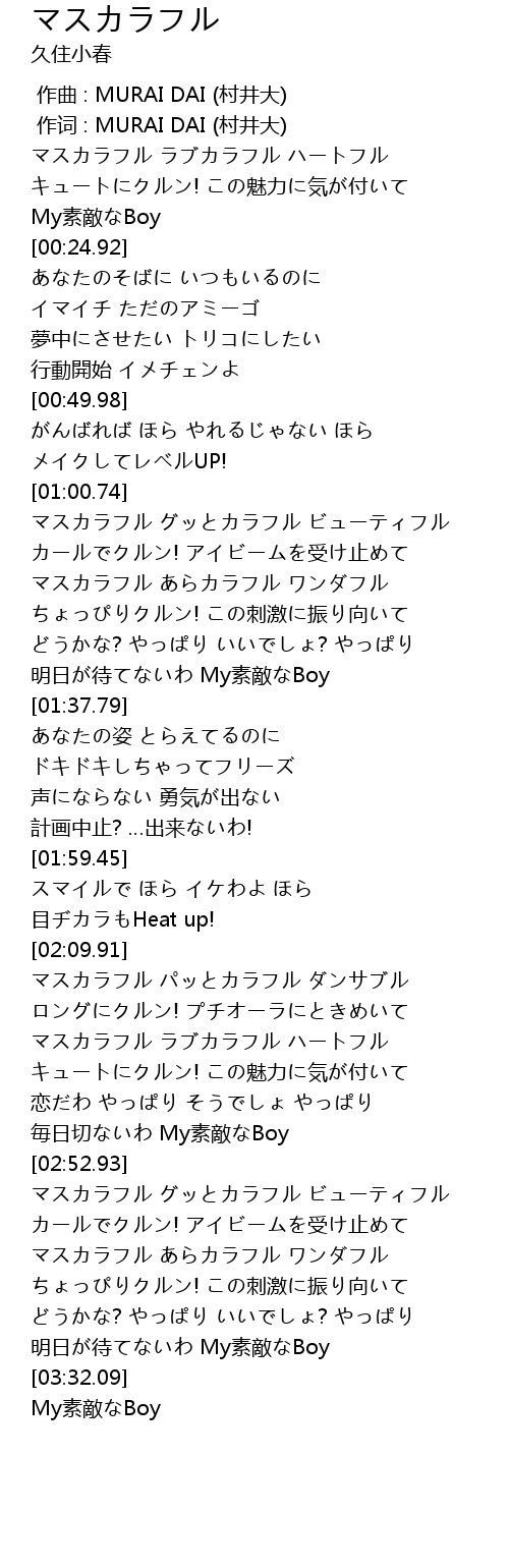 | [03:08.01] | マスカラフル あらカラフル ワンダフル |