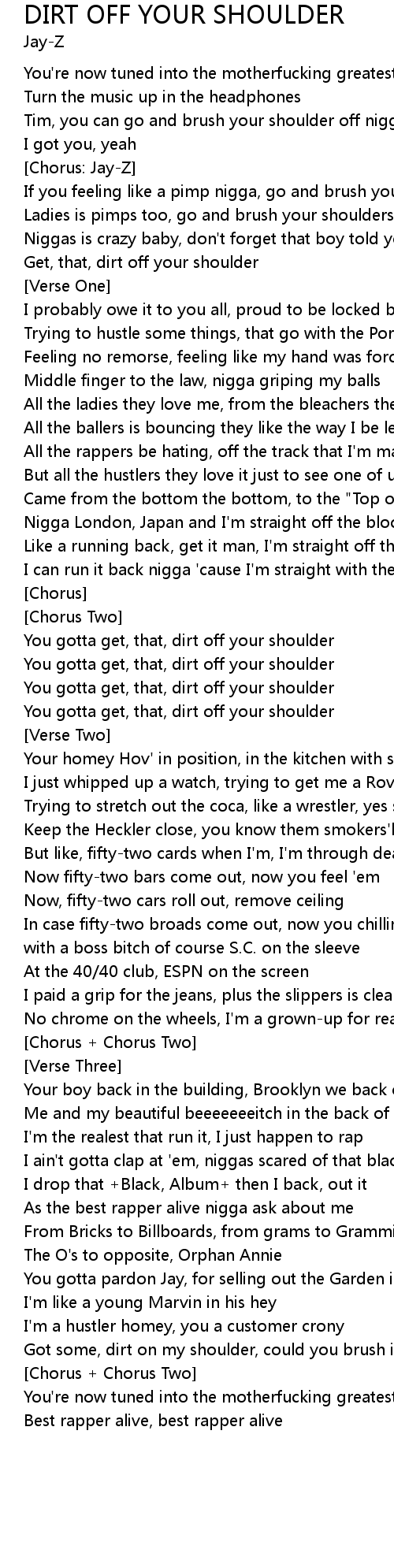 If you feeling like a pimp nigga, go and brush your shoulders off |