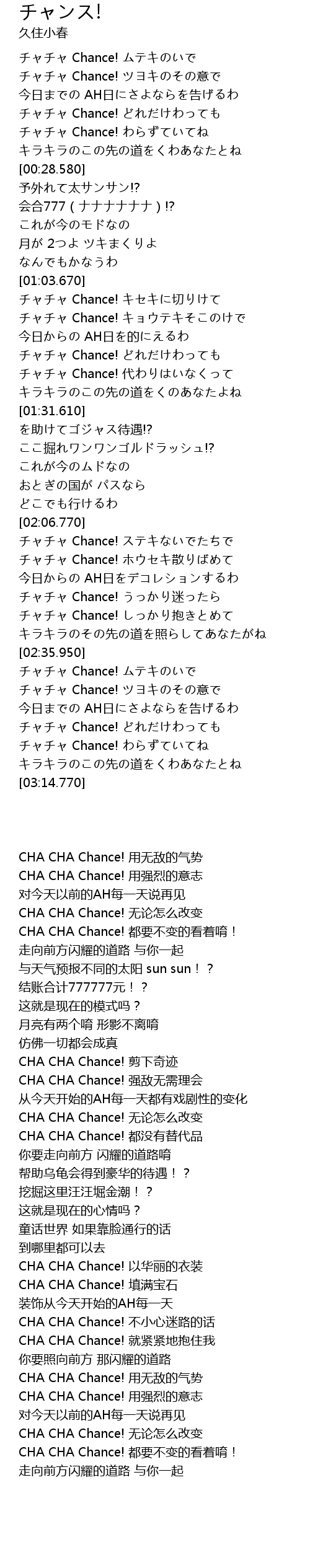 | [00:18.860] | CHA CHA Chance! 都要不变的看着唷! |