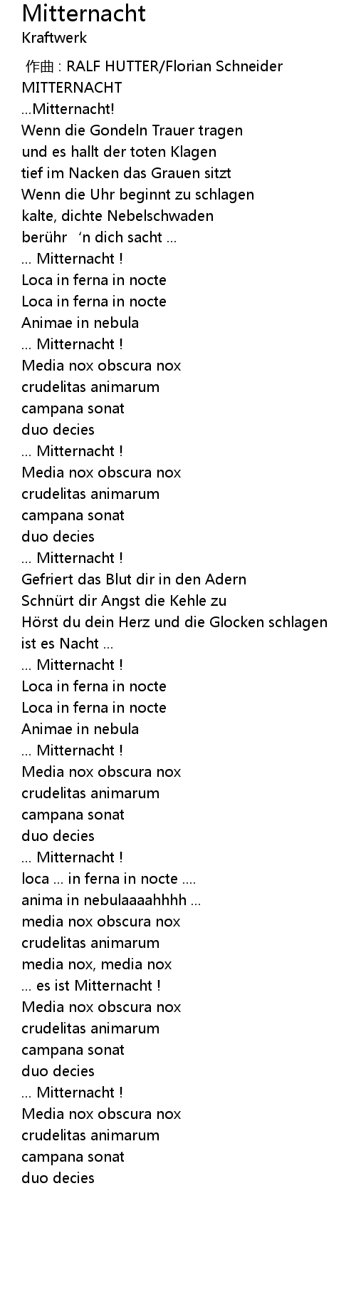 | [00:00.000] | 作曲 : RALF HUTTER/Florian Schneider |