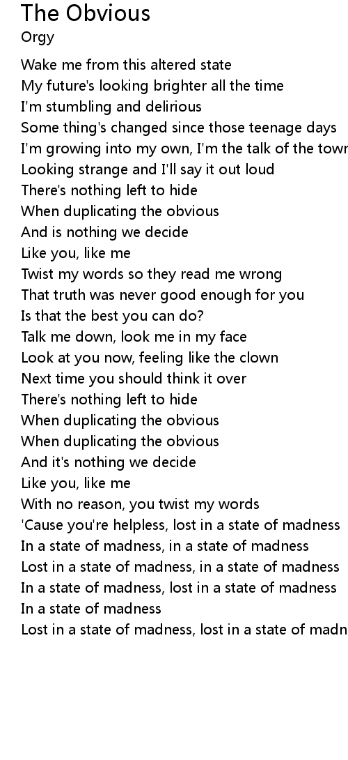 In a state of madness, lost in a state of madness |