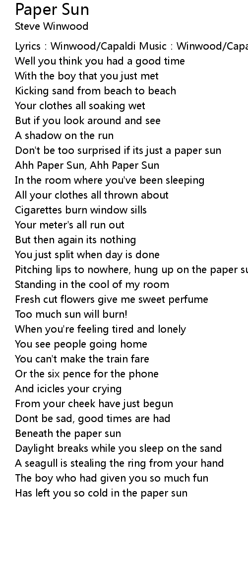 | 歌曲 | Paper Sun |