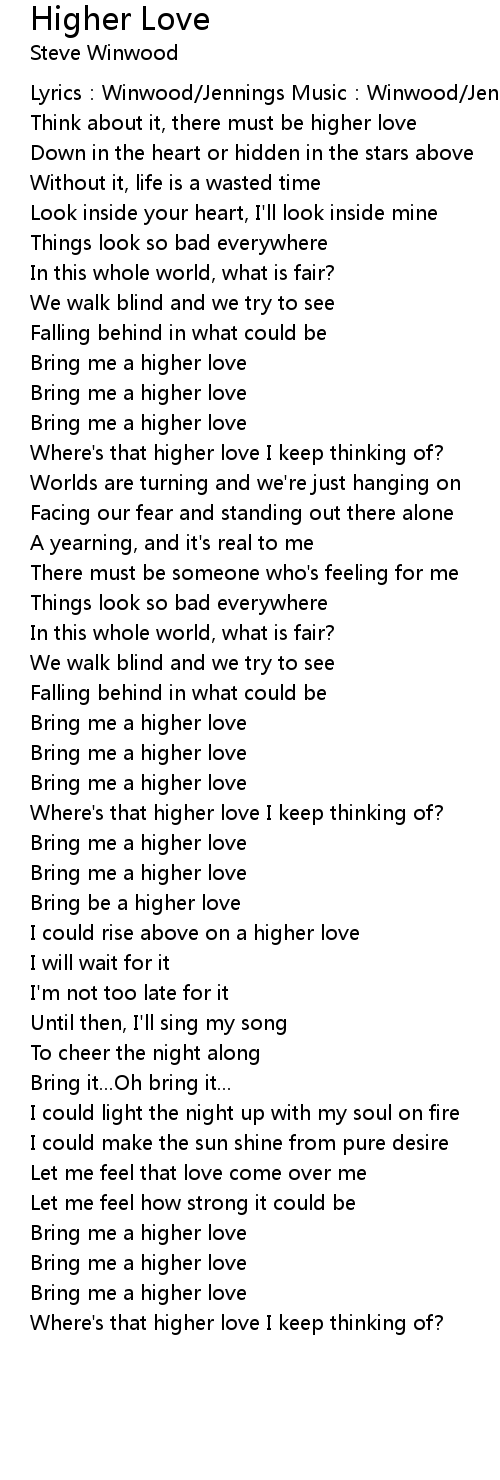 | Where' s that higher love I keep thinking of? | |