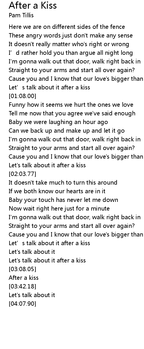 | [01:02.21] | Let' s talk about it after a kiss |