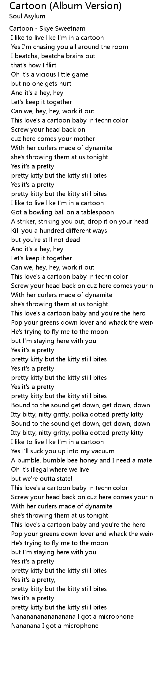 I like to live like I'm in a cartoon |