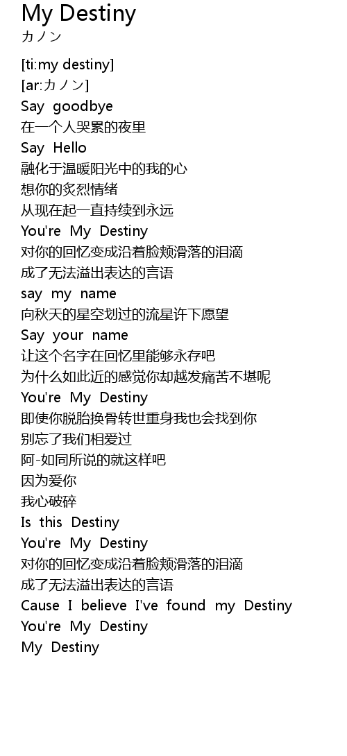 | [03:49.761] | Cause I believe I' ve found my Destiny |