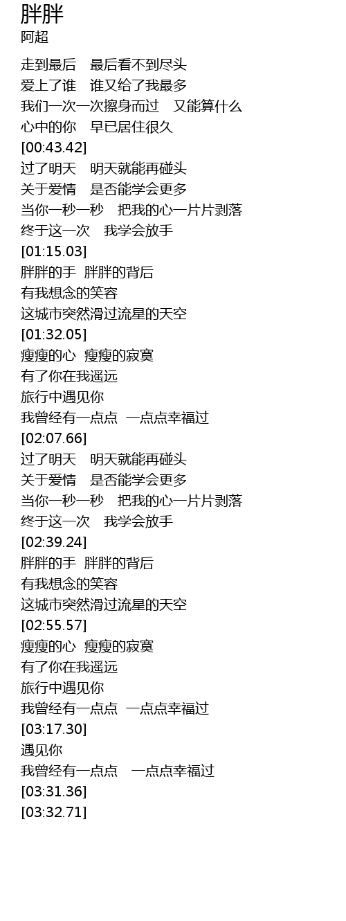 | [02:39.79] | 胖胖的手 胖胖的背后 |
