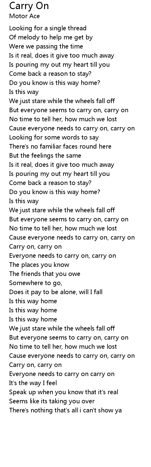 Cause everyone needs to carry on, carry on
