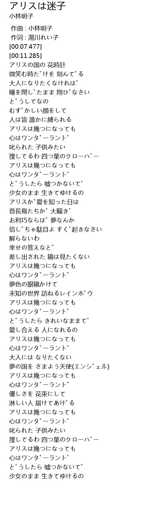 | [01:08.919] | アリスは幾つになっても |