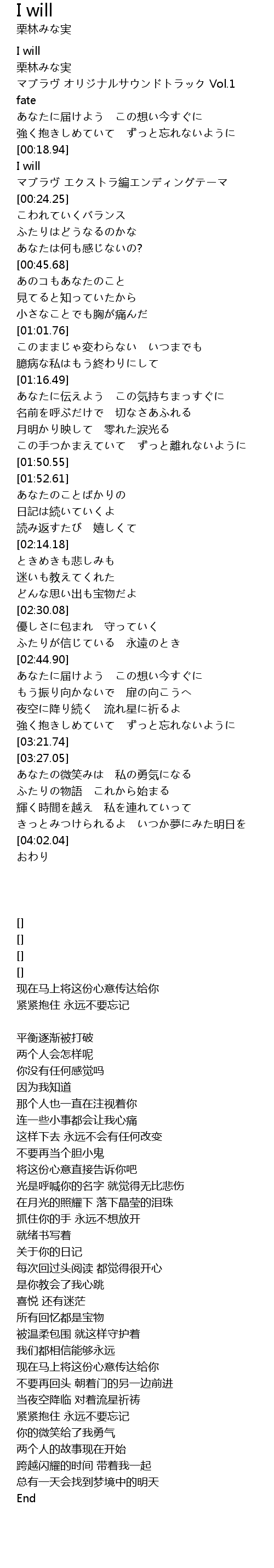 | 歌曲 | I will |