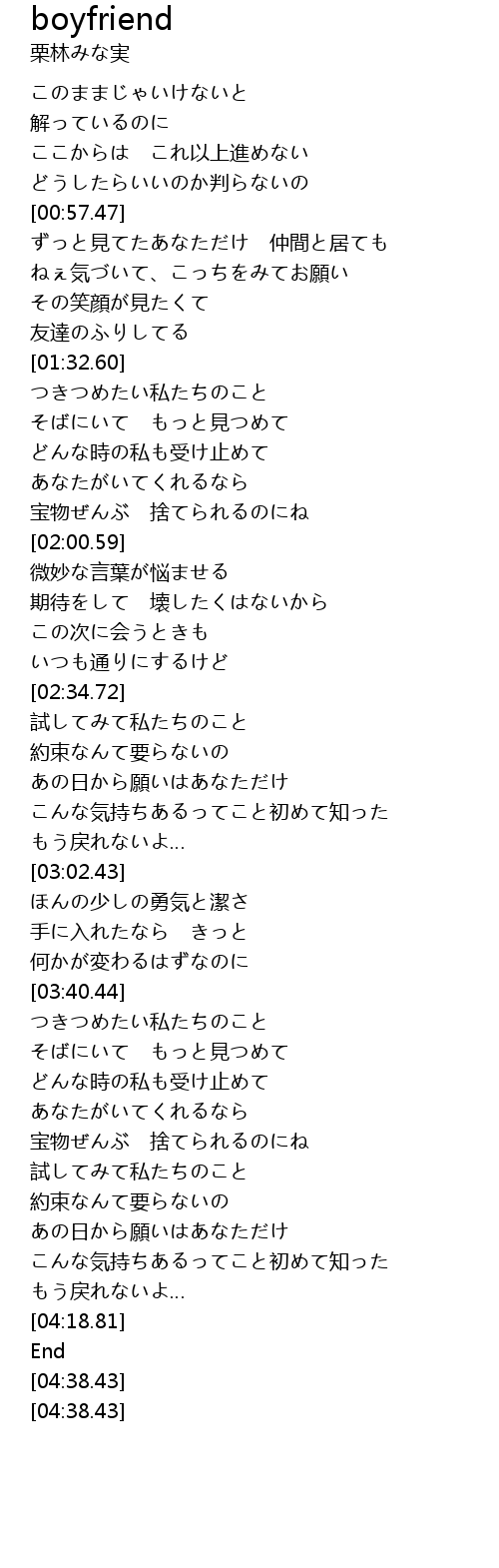 | [04:08.90] | こんな気持ちあるってこと初めて知った |