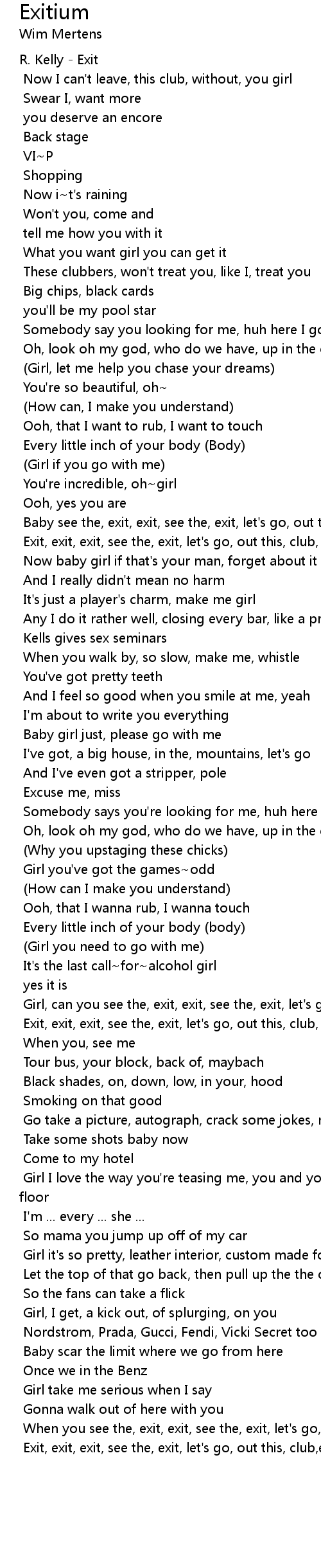 Baby see the, exit, exit, see the, exit, let's go, out this, club |