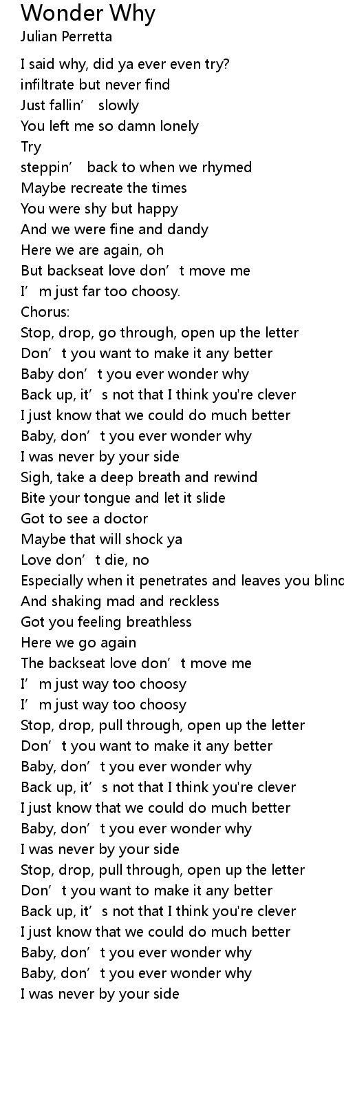 | [01:18.31] | Baby, don’t you ever wonder why |