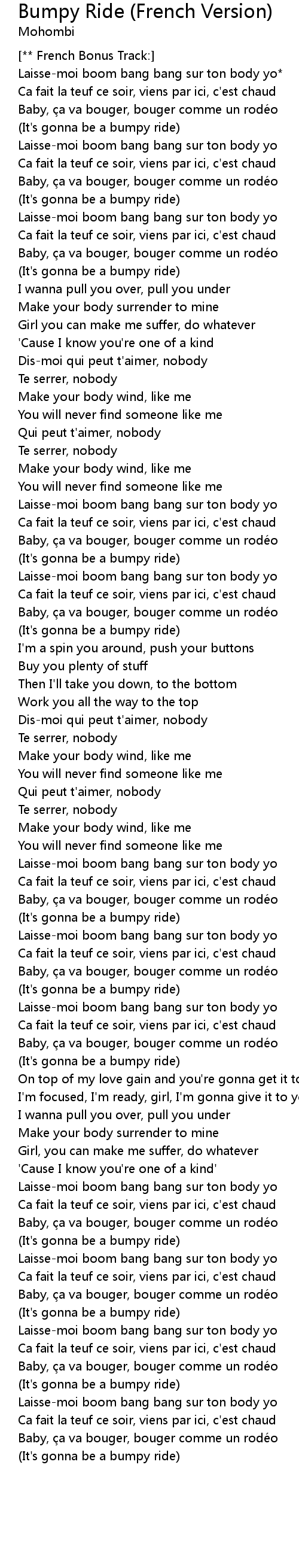 | 歌曲 | Bumpy Ride (French Version) |