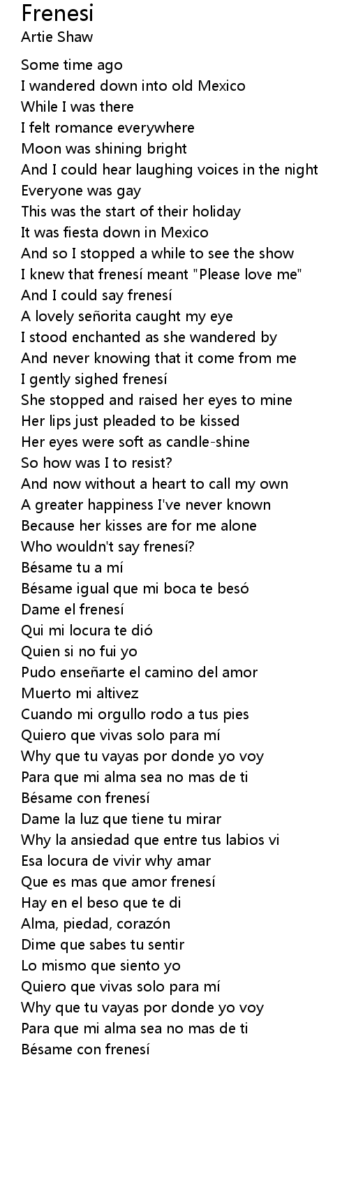 | I knew that frenesí meant " Please love me" | |