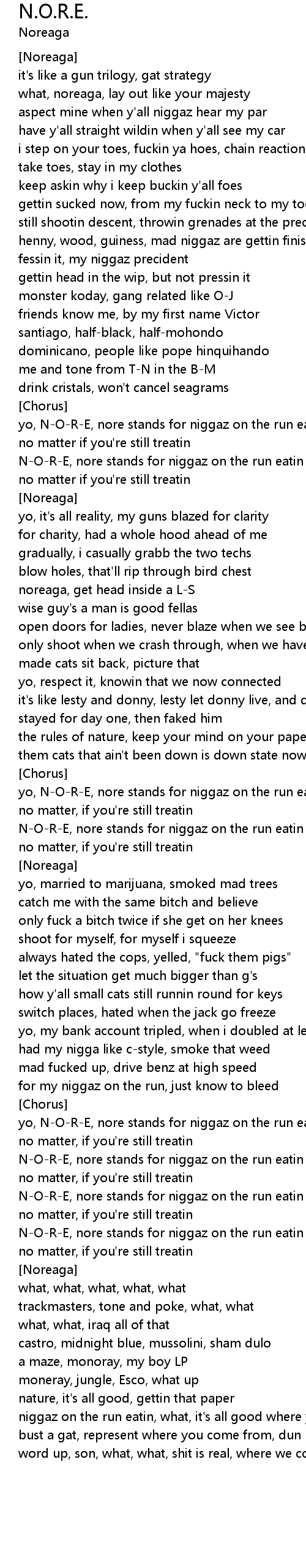 N-O-R-E, nore stands for niggaz on the run eatin |