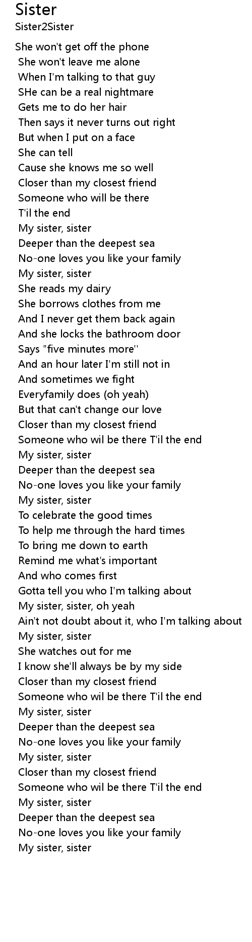 My sister, sister, oh yeah |