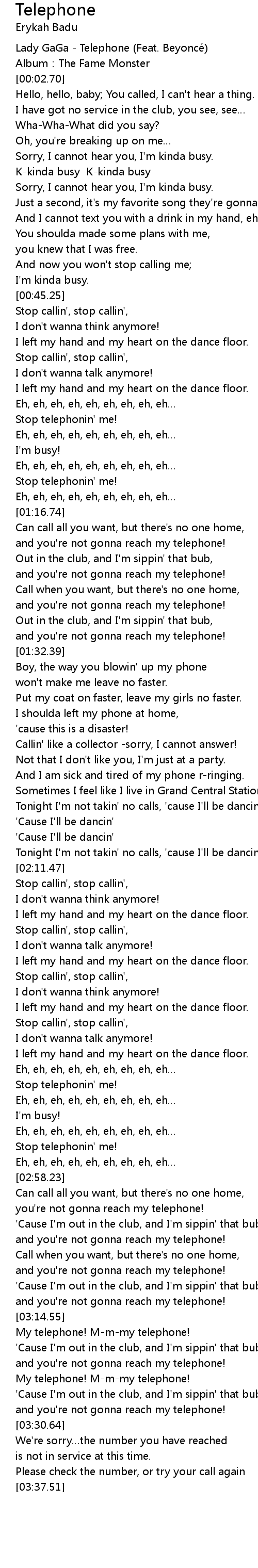 | [00:-1.50] | Lady GaGa - Telephone (Feat. Beyoncé) |