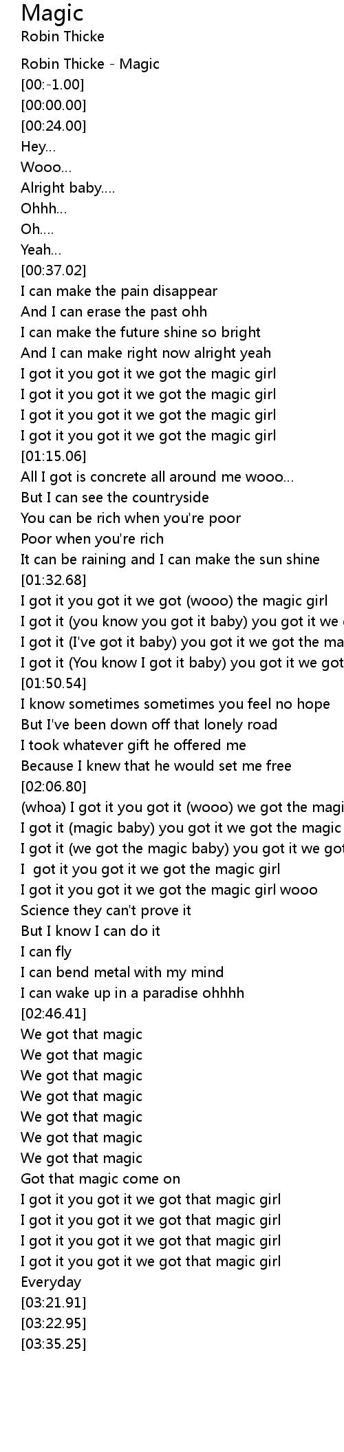 | [01:37.25] | I got it you know you got it baby you got it we got the magic girl |