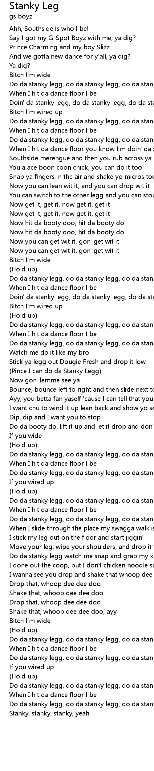 Do da stanky legg, do da stanky legg, do da stanky legg |