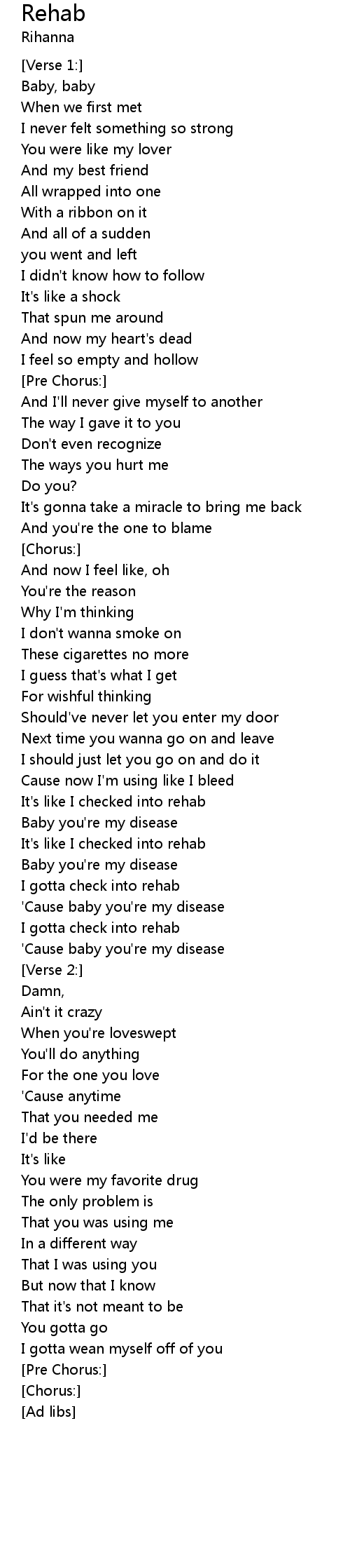 I gotta check into rehab |