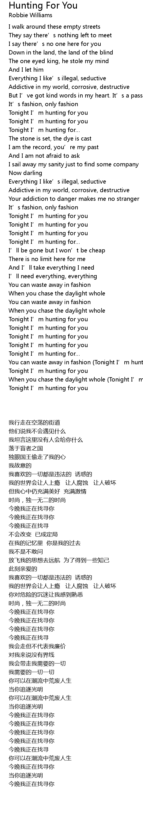 | [03:17.45] | You can waste away in fashion (Tonight I’m hunting for you) |