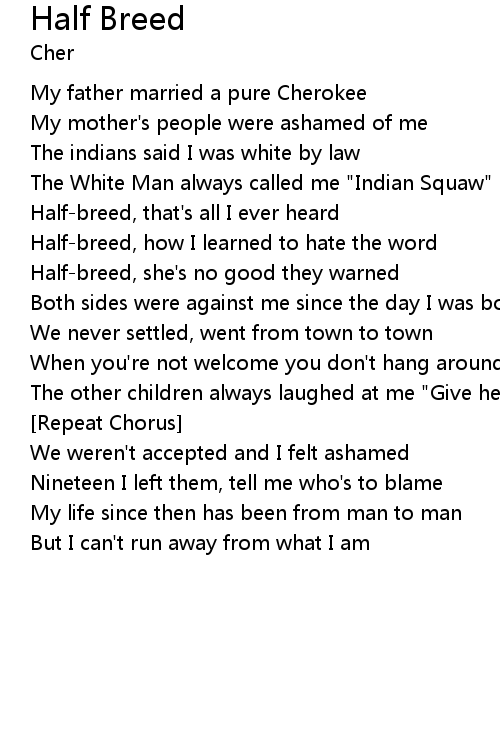 Half-breed, that's all I ever heard |
