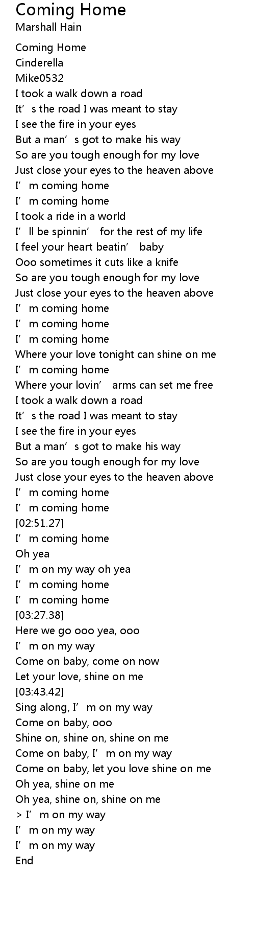 | [04:19.34] | Oh yea, shine on, shine on me |