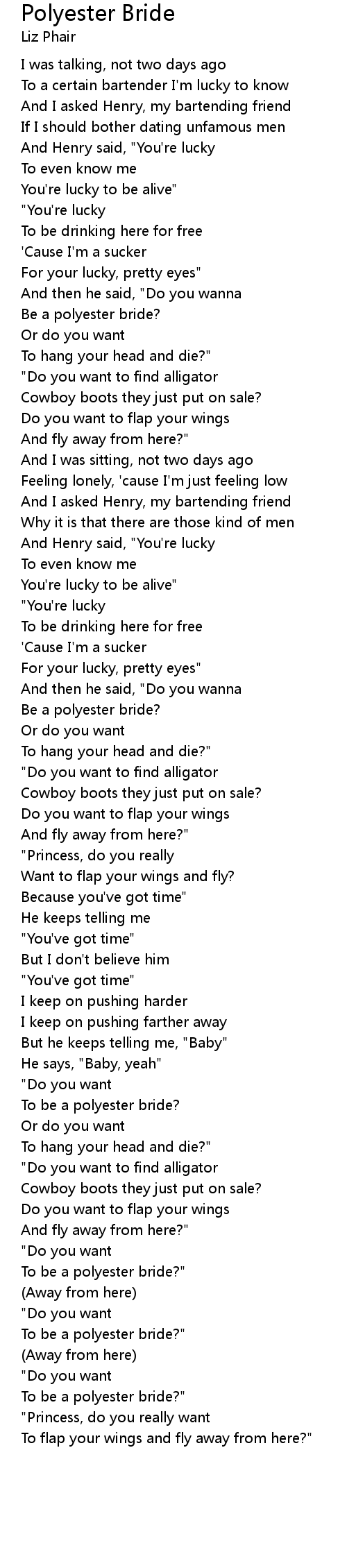 To be a polyester bride?" |