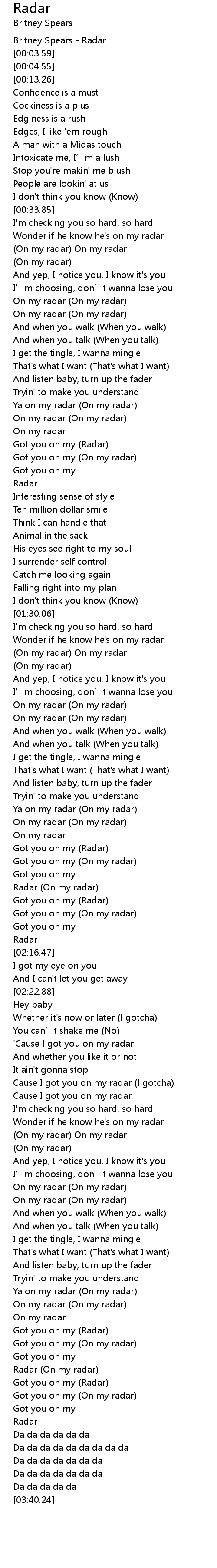 | [01:32.45] | Wonder if he know he' s on my radar |