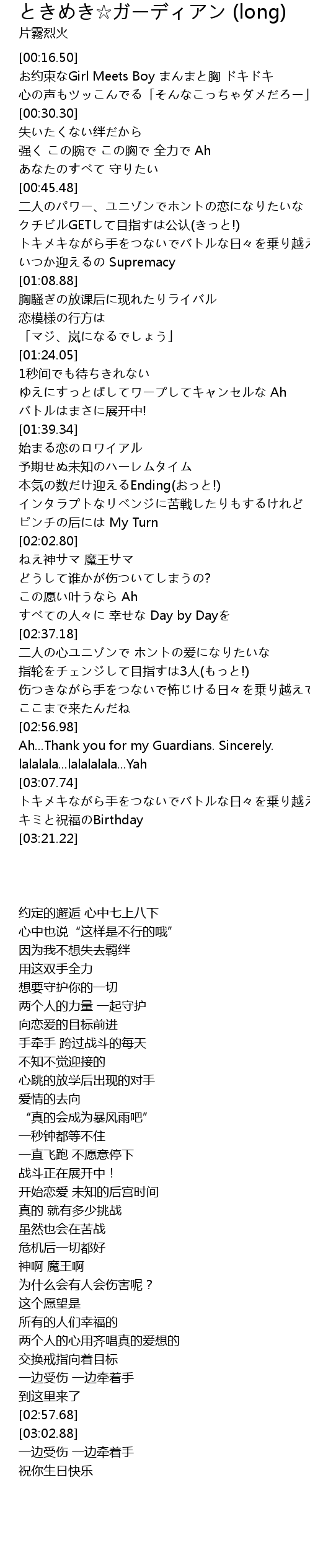 | [02:57.68] | Ah... Thank you for my Guardians. Sincerely. |