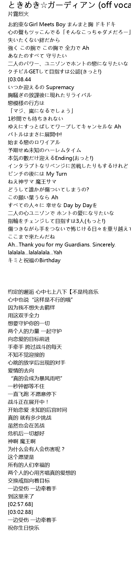 | [02:57.68] | Ah... Thank you for my Guardians. Sincerely. |