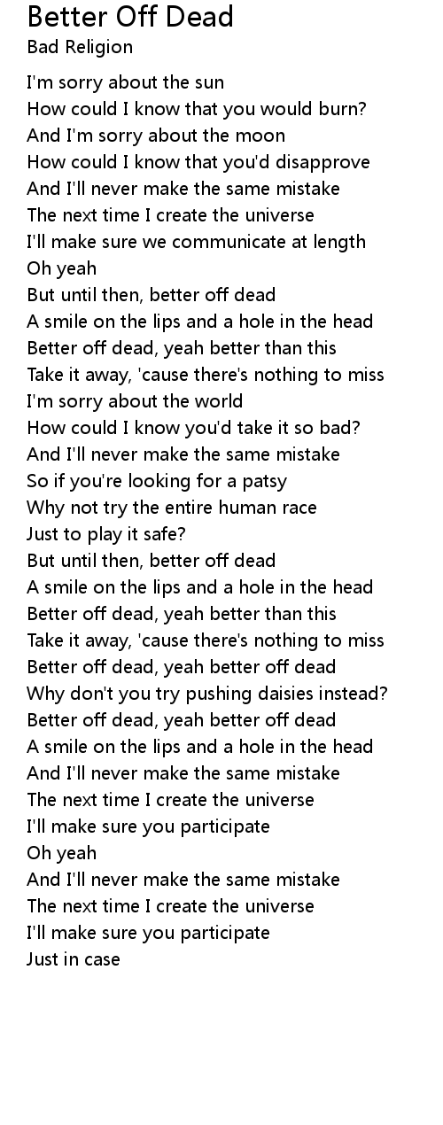 Better off dead, yeah better off dead |