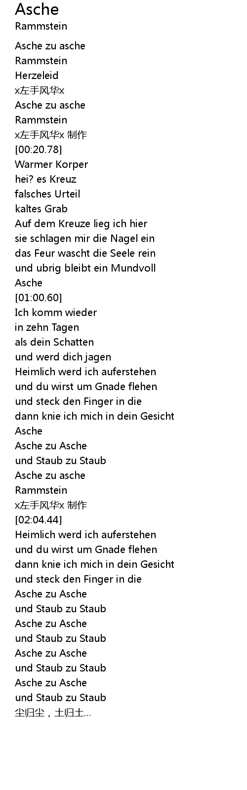 | [00:45.66] | Auf dem Kreuze lieg ich hier |