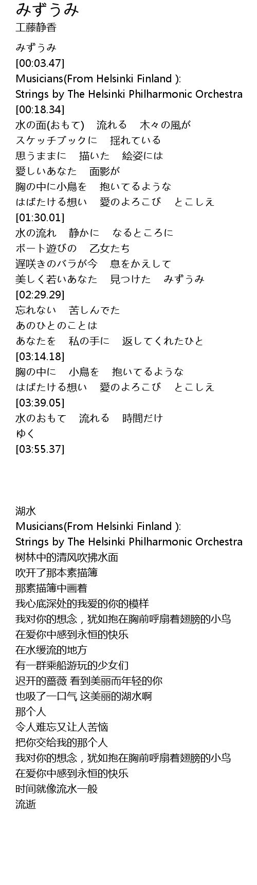 | [00:13.41] | Strings by The Helsinki Philharmonic Orchestra |