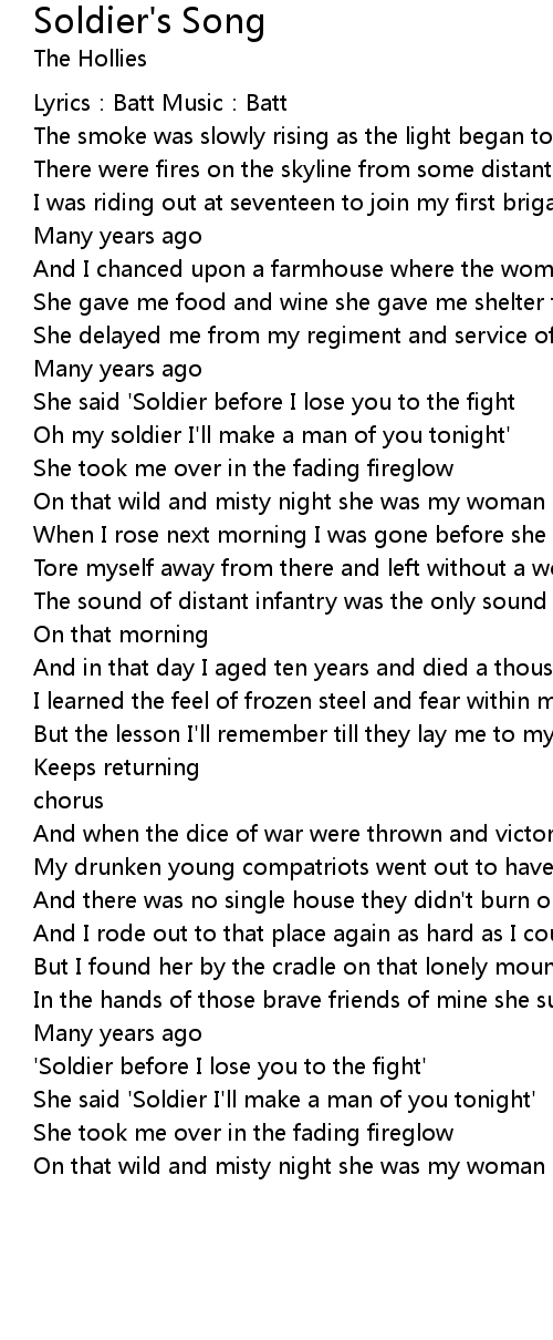 | She said ' Soldier I' ll make a man of you tonight' | |