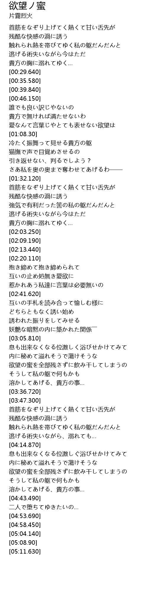 | [04:24.800] | 欲望の蜜を全部残さずに飲み干してしまうの |