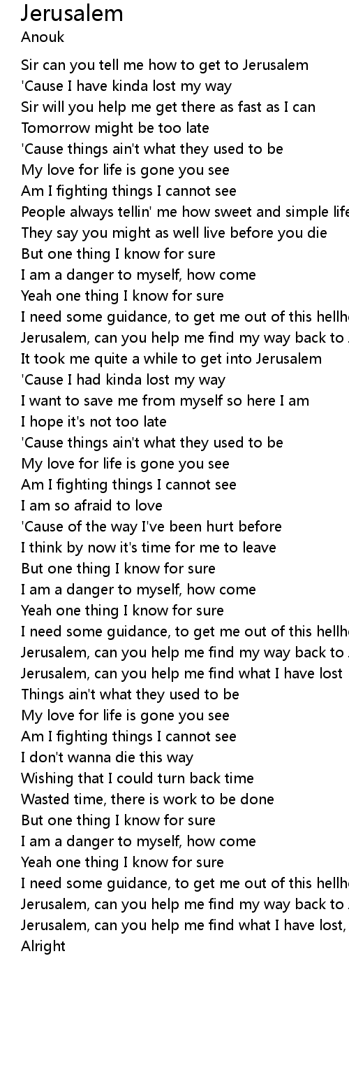 Jerusalem, can you help me find what I have lost, yeah yeah