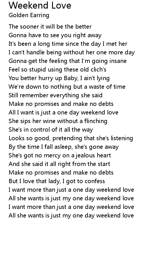 All she wants is just my one day weekend love |