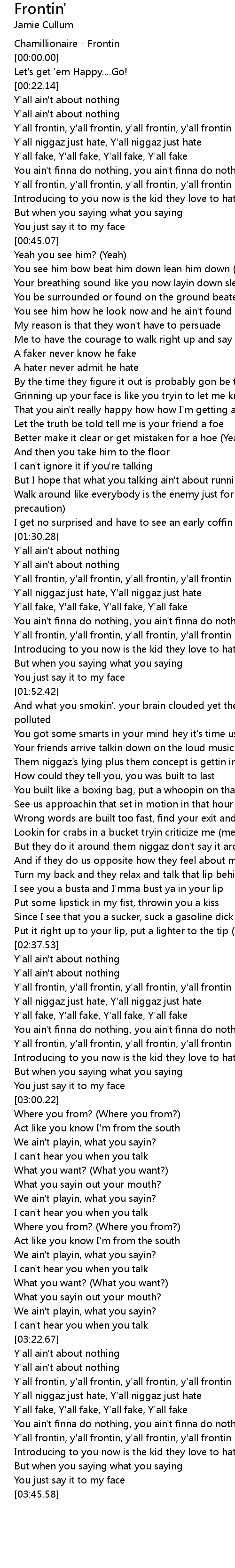 Y'all frontin, y'all frontin, y'all frontin, y'all frontin |