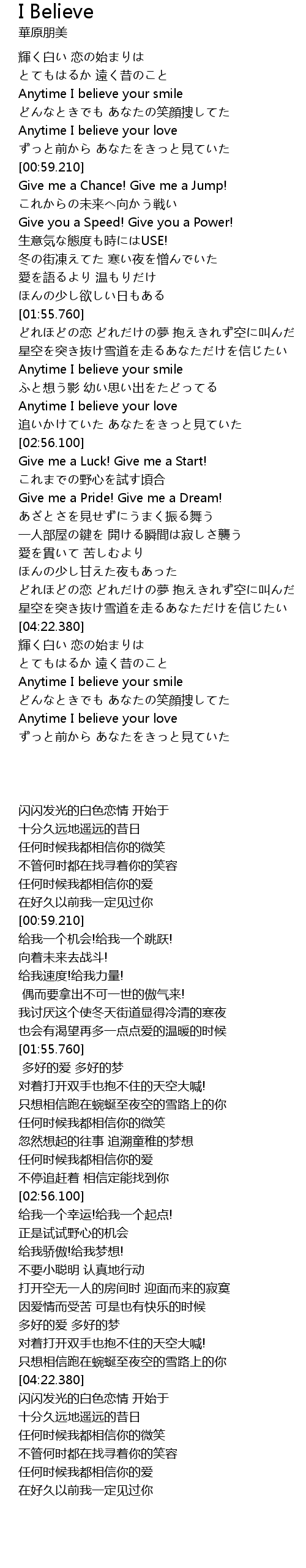 | [05:02.060] | 任何时候我都相信你的微笑 |