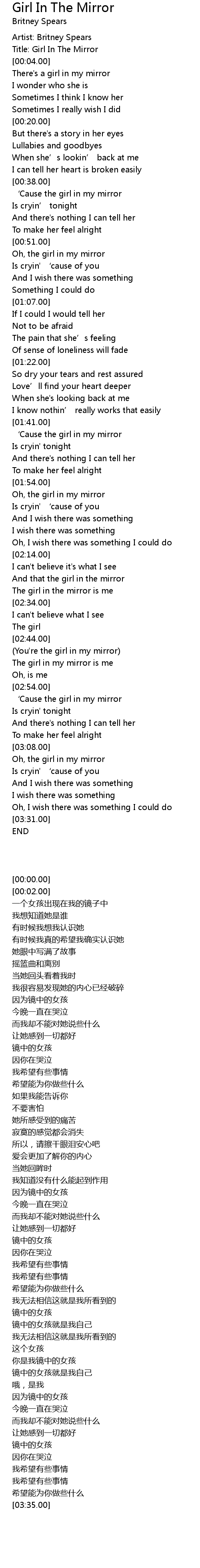 | [01:41.00] | ‘Cause the girl in my mirror |