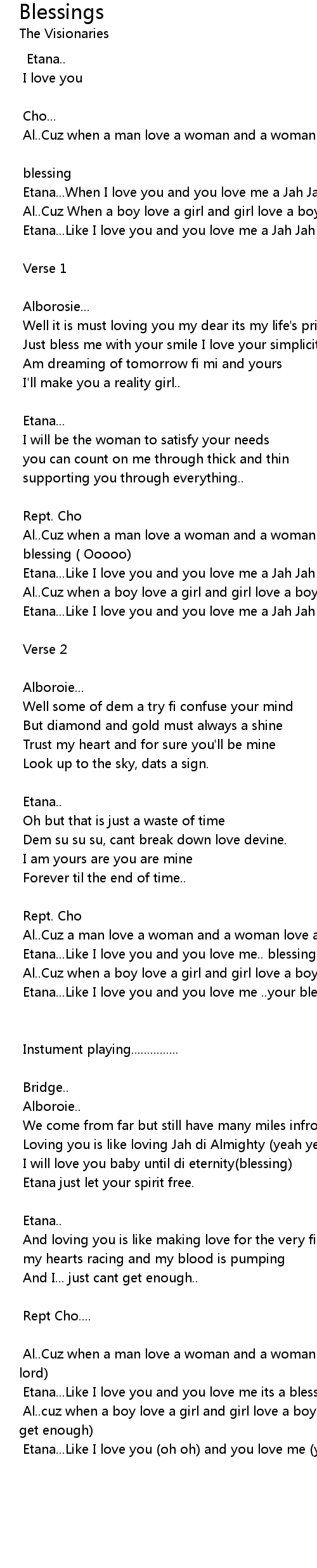 Al..Cuz when a man love a woman and a woman love a man a Jah Jah blessing (oh lord) |