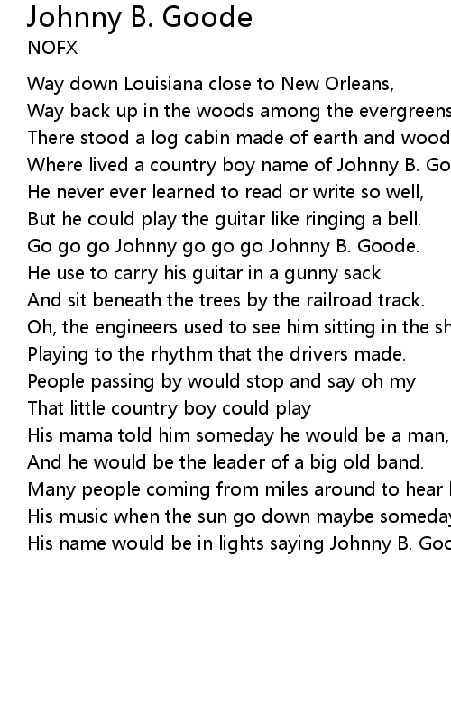 Go go go Johnny go go go Johnny B. Goode. |