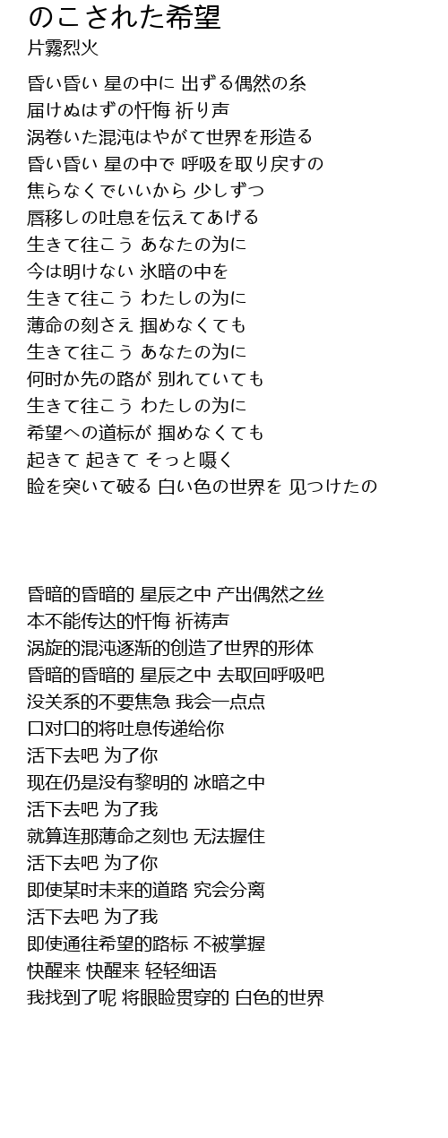 | 歌曲 | のこされた希望 |