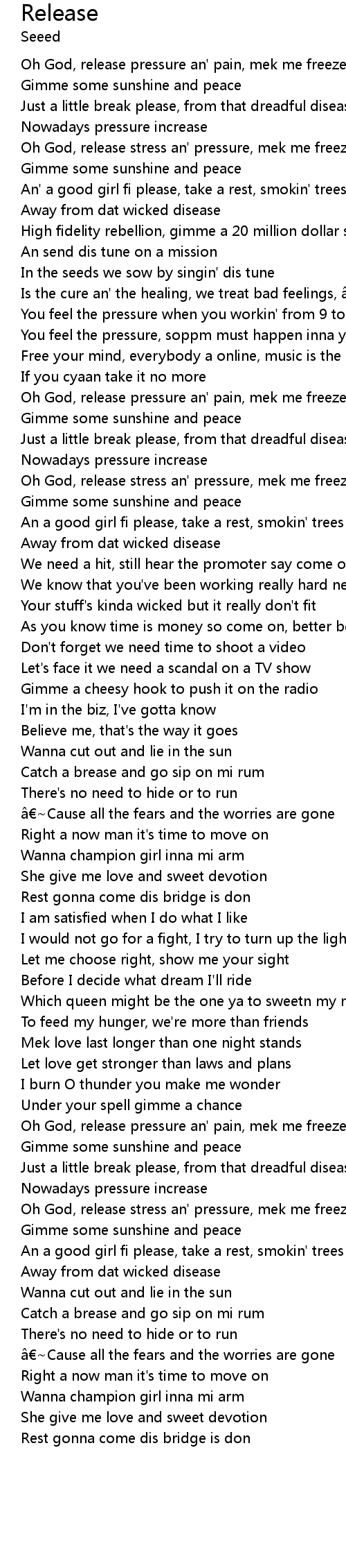 | An' a good girl fi please, take a rest, smokin' trees | |