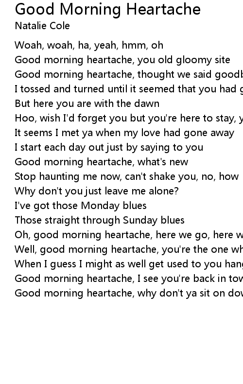 Oh, good morning heartache, here we go, here we go, here we go again |