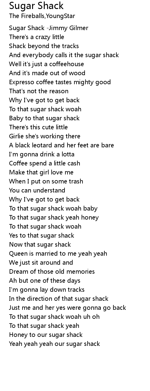 To that sugar shack woah uh oh |