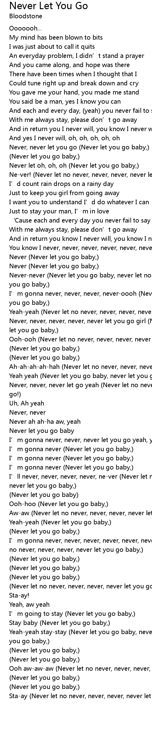 | Nevernever Never let you go baby, never let no never, never, never, never let you go baby, | |